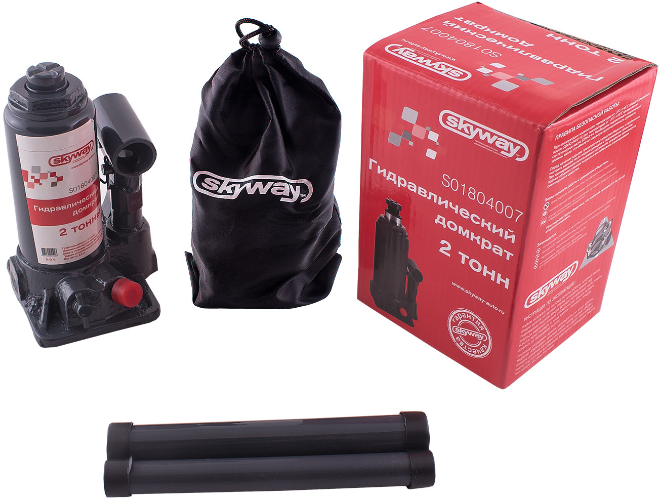 Необходимость заменить колесо может возникнуть в любую минуту, справиться с такой задачей и при этом затратить минимум собственных сил, поможет компактный и надежный гидравлический бутылочный домкрат «Skyway». При небольших габаритах, он может поднять не только легковой автомобиль, но также и небольшой грузовой транспорт.