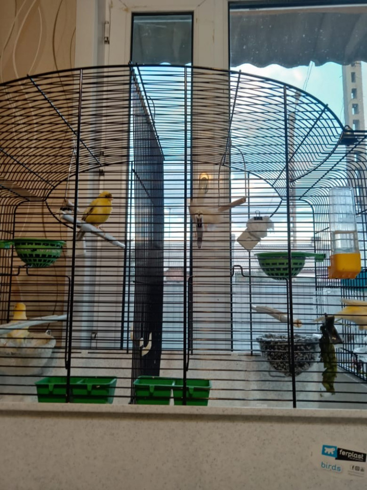 Клетка просто супер!!! Я сама довольна кажется, больше чем птички. Поворотные кормушки не дадут рассыпаться корму, подрезали кормушки раскаленным ножом и подпилили пилкой, что позволит не перекормить птиц, жерди заменим позже на натуральные с корой, обустроим и будет красота. Спасибо Флип кз, Вы лучшие. Рекомендую, стоит своих денег!