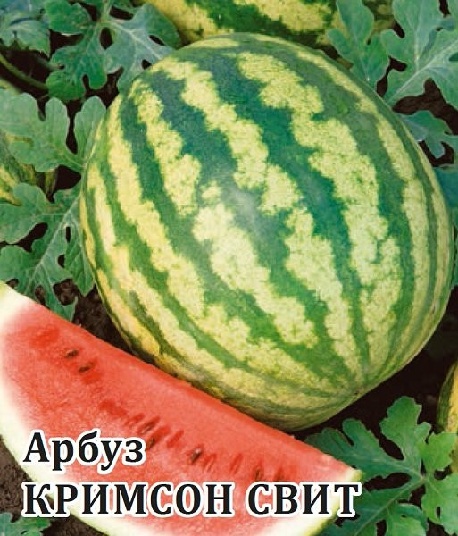 Гавриш Семена. Арбуз «Кримсон Свит»В данный момент этот товар отсутствует в продаже. Возможно, у нас найдется аналогичный или похожий товар здесь. Серия: Фермерское подворье Ранний (67-82 дня) сорт с дружным созреванием плодов. Растение длинноплетистое, длиной до 5-6 м. Плод округлый, массой 3-6 кг, гладкий, полосатый, с красной, нежной, плотной, сочной и сладкой мякотью, отличного вкуса. Урожайность на богаре 2,7-4,7, а на поливе 7,5-10,5 кг\м². |