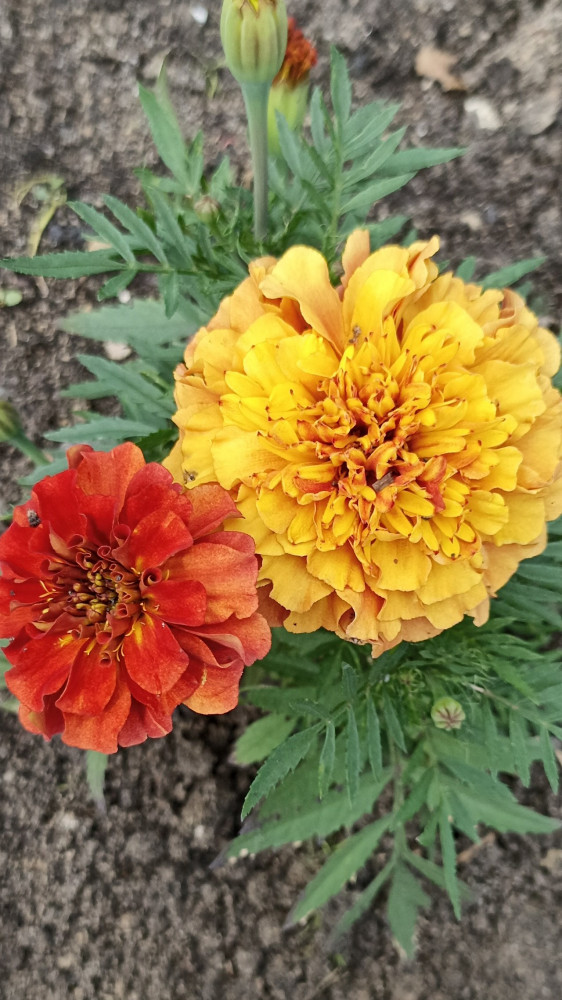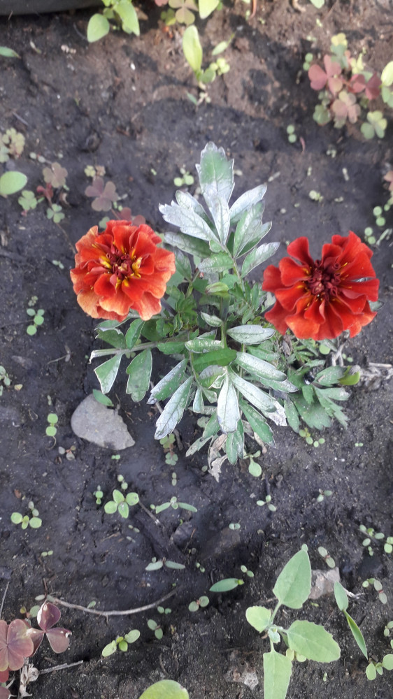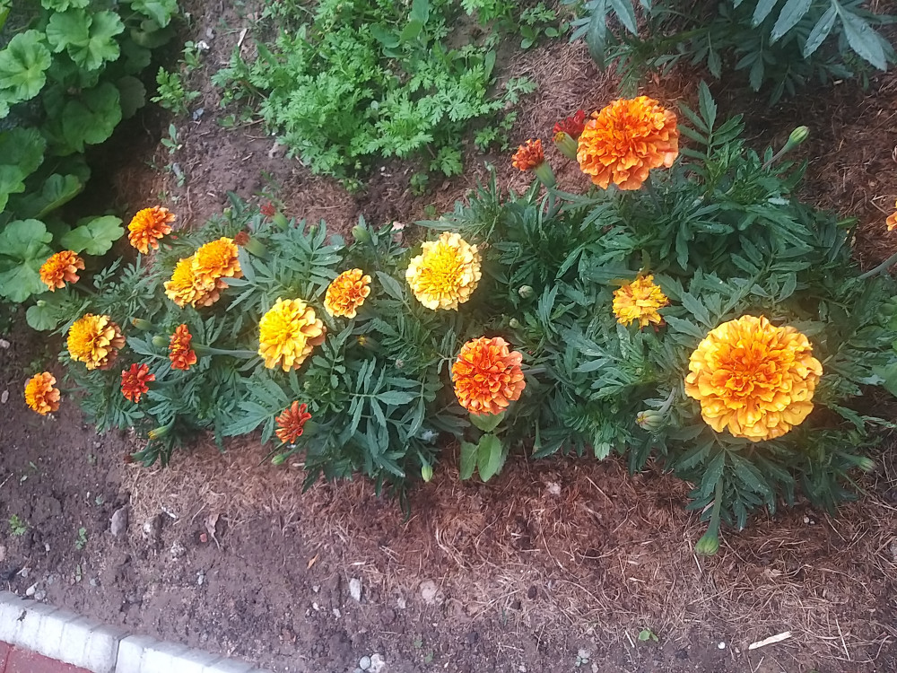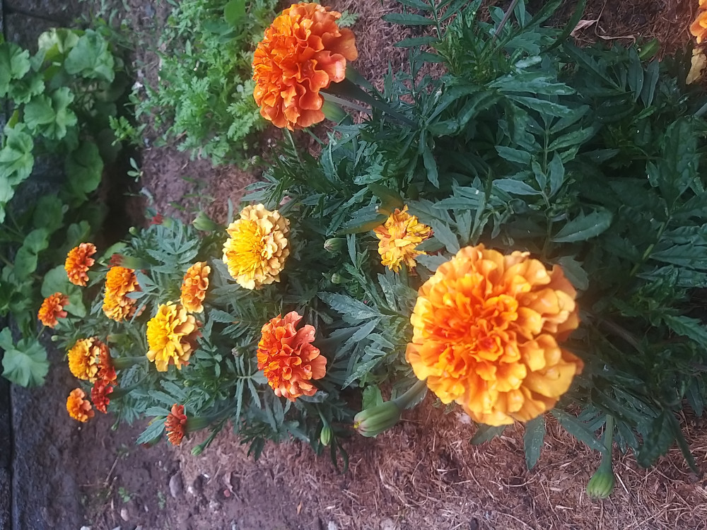 Очень красивые бархатцы! Кустики маленькие, компактные, а на них уже 5 цветков разных оттенков. По мере роста цветок меняет цвет от более темного к светлому. Очень красиво смотрится. Попробуем собрать свои семена.