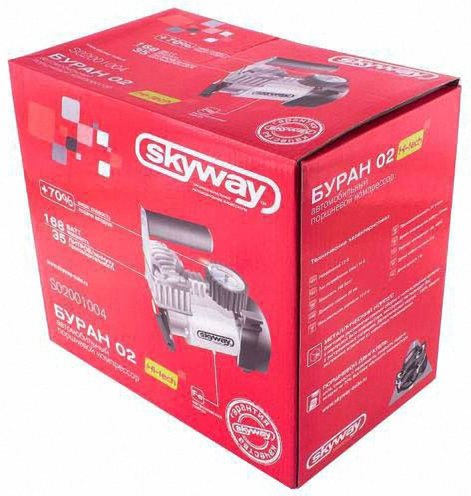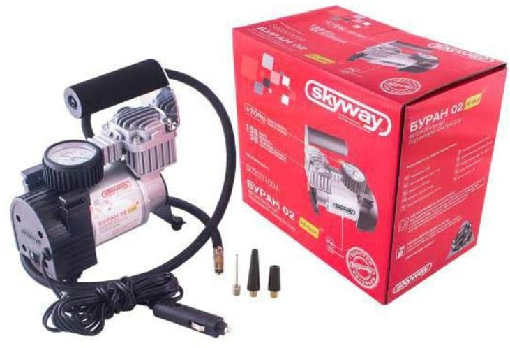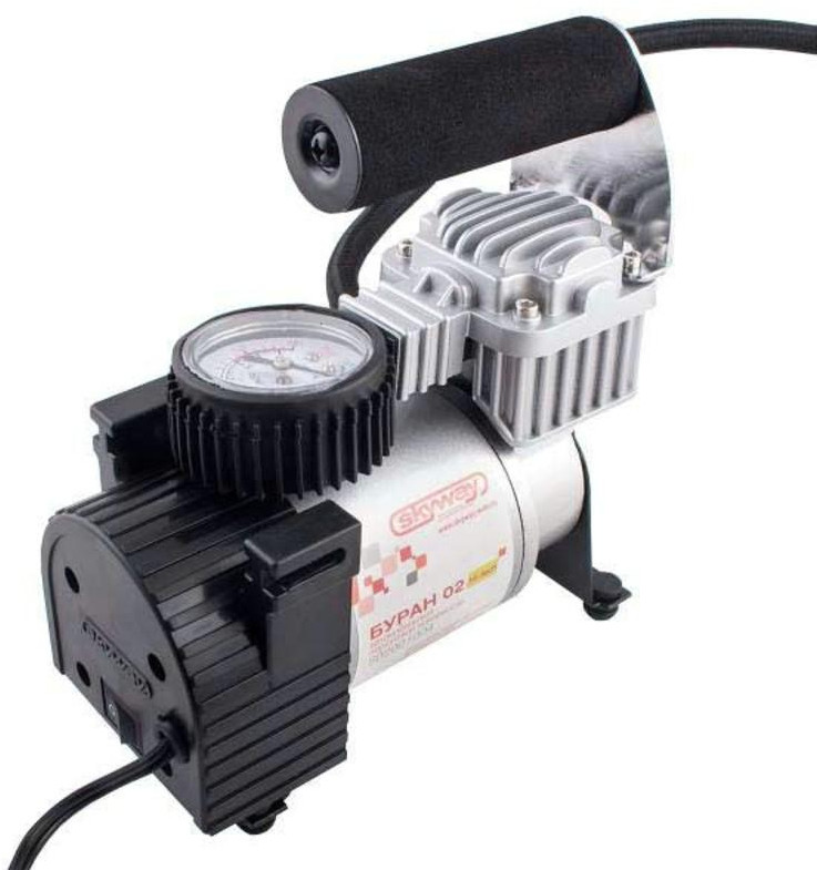Компрессор «Буран — 02» — при своих небольших размерах обладает производительностью 45 л/мин. Компрессор в прочном металлическом корпусе и поршневым алюминиевым механизмом обеспечивают долговечность и отказоустойчивость. Использование высококачественных материалов обеспечивают гибкость шланга и кабеля при низких температурах, а двойное армирование шланга дает высокую защиту от повреждений.