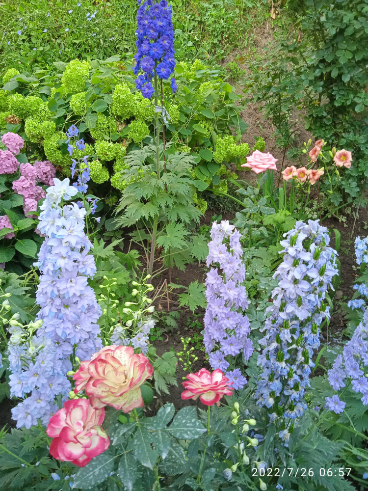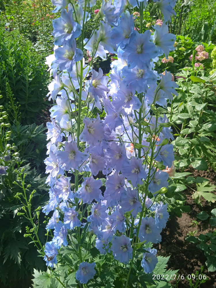 Цветение в первый год, из пачки взошли все три дельфиниума.