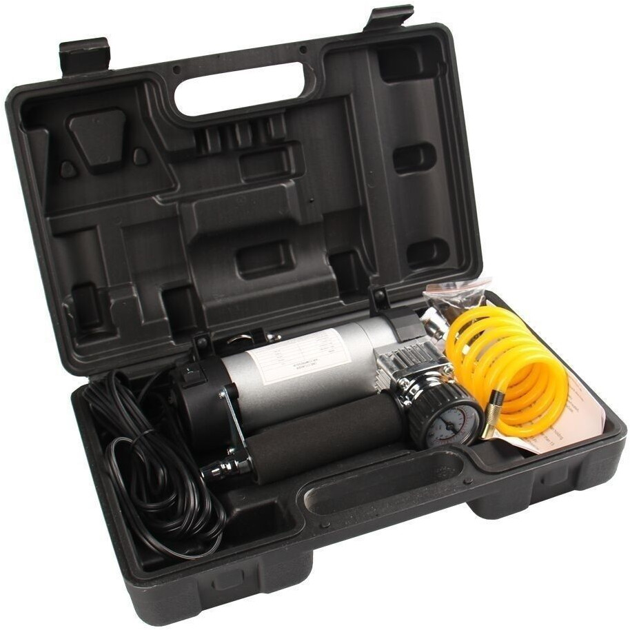 Удобный и прочный кейс для хранения и транспортировки поможет предотвратить повреждения и сохранить комплектацию компрессора. Компрессор оснащен системой электрозащиты, встроенной в штекер прикуривателя. Использование высококачественных материалов обеспечивают гибкость шланга и кабеля даже при низких температурах.