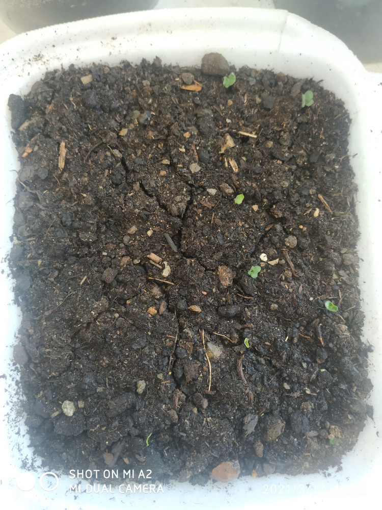 всхожесть хорошая,взошла через три дня после посева, предварительно замачивала в фитоспарине М,на два часа,лук ещё не взошёл,на фото видно как взошла капуста,а лука ещё нет,ячейка поделена на пополам.