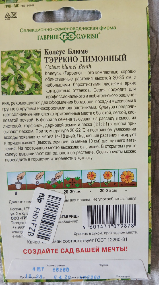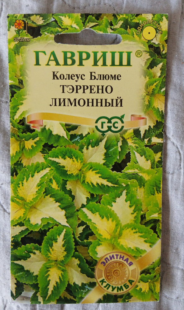 Гавриш Семена. Колеус «Тэррено лимонный»-25% +3 высокая всхожесть красивый окрас фасовка 5 шт