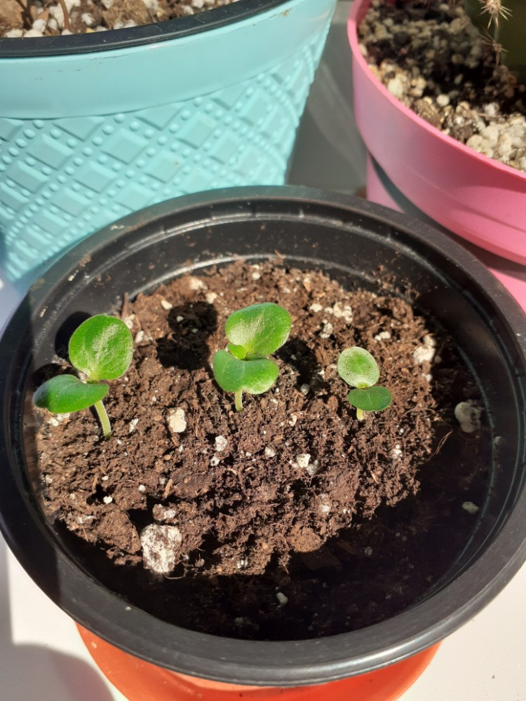 Всхожесть отличная! Три из трех. До этого брала жёлтую. Уже цвела. Очень нарядное растение!
