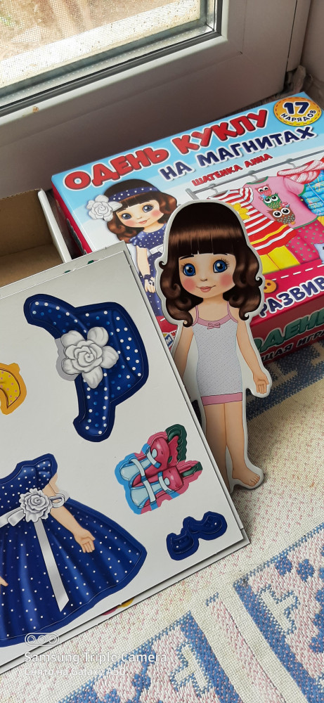 Кукла красивая и интересная! качественный товар, магнитики держат хорошо. НО мы рассчитывали, что в комплекте будет действительно 17 нарядов. на деле же, их всего пять. Производителю следовало написать не 17 нарядов, а 17 предметов одежды (причем считается каждая туфелька, как отдельный предмет). Поэтому наши ожидания не оправдались, за это снимаю звезды.