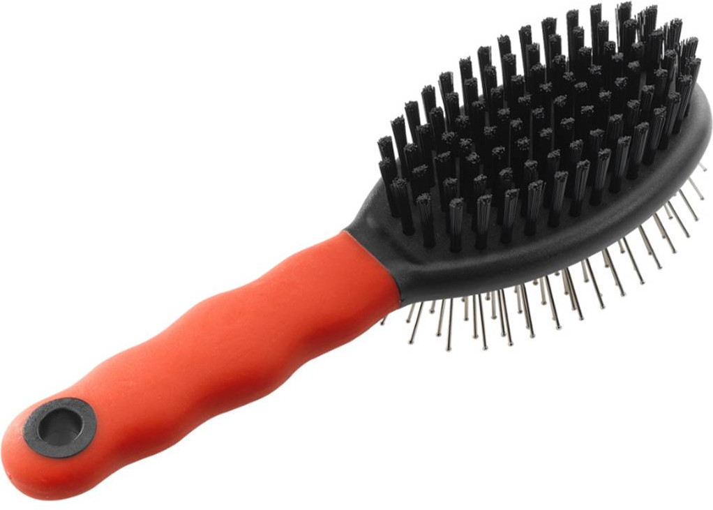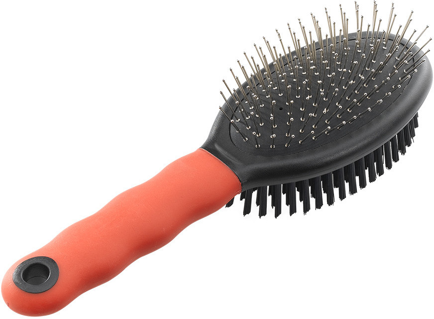 Двусторонняя щетка для собак и кошек с короткой, средней и длинной шерстью. Металлические закругленные зубья не повредят кожные покровы вашего питомца и обеспечат приятный массажный эффект. Щетинки сделают шерсть блестящей и сильной.