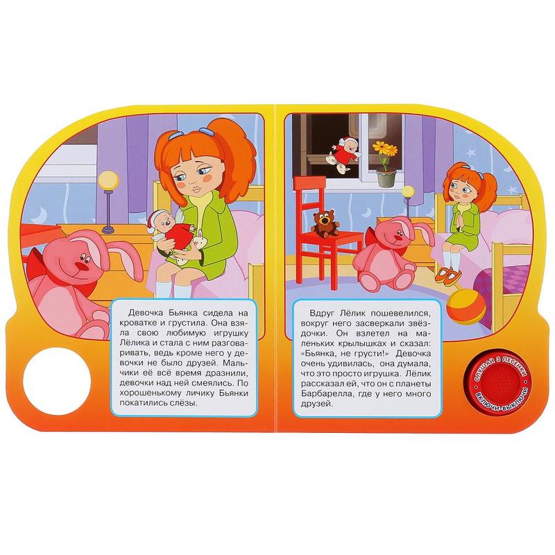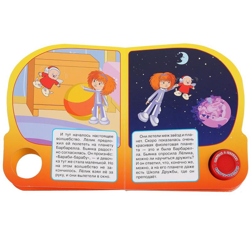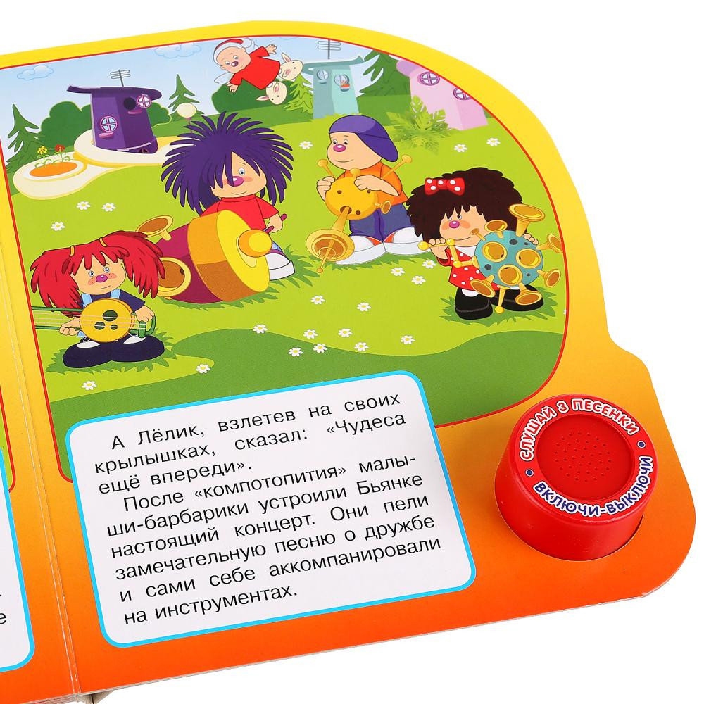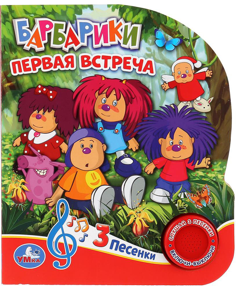 УМка Барбарики (1 кнопка с тремя песенками)В данный момент этот товар отсутствует в продаже. Возможно, у нас найдется аналогичный или похожий товар здесь. Серия: 1 кнопка 3 песни Книга «Барбарики» с музыкальной кнопкой непременно понравится ребенку. Если нажать на кнопку, то можно послушать три веселые песенки, а внутри на страницах можно найти историю про знакомых персонажей мультика. Иллюстрации книги — очень яркие и красочные, страницы выполнены из плотного картона, питание — от батареек LR1130, 3шт. (входят в комплект). |