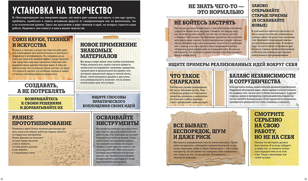 Искусство мастеритьВ данный момент этот товар отсутствует в продаже. Возможно, у нас найдется аналогичный или похожий товар здесь. Серия: Детство 5-12 Книга «Искусство мастерить» — для тех, кто идет по пути познания окружающего мира через творчество и научные эксперименты. В ней представлены портреты 23 мастеров-любителей, в разное время работавших в Творческой мастерской музея «Эксплораториум». Герои книги рассказывают о своих любимых приемах, инструментах и материалах, источниках вдохновения, поисках и сомнениях. Словом, обо всем, что помогает им воплощать в жизнь свои оригинальные идеи.Вооружившись советами мастера, читатель сможет засучить рукава и сделать что-то интересное в той же технике, следуя пошаговой инструкции с иллюстрациями. Настроиться на творческий лад помогут вдохновляющие работы художников, дизайнеров, конструкторов, которые живут в разных странах, работают с аналогичными материалами, но делают это по-своему. Основатели Творческой мастерской и авторы этой книги отобрали более 150 удивительных проектов, в которых соединились искусство, наука и технология. |