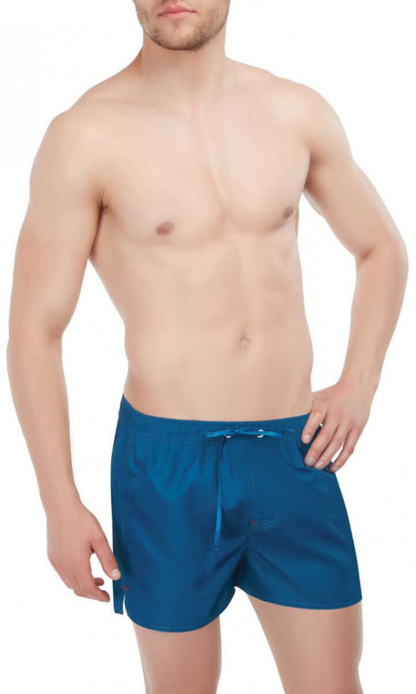Мужские мини-шорты свободного кроя, выполнены из легкой быстросохнущей ткани. Длина до середины бедра, внутренние боковые карманы, на задней детали карман с клапаном, пояс на резинке и шнуровке. Внутри вшита мягкая сетка.