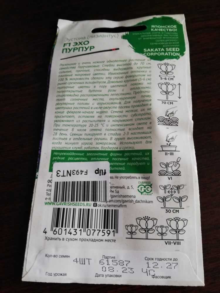 Sakata Семена. Эустома «Эхо пурпур» F1+28 хорошая всхожесть красивая расцветка медленный рост