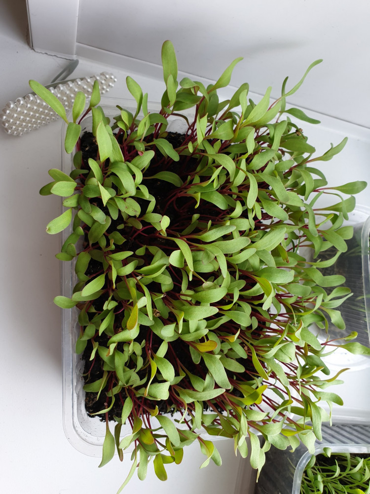 Выросло быстро за 7 дней. Взошло на 3 день. Вкус немного напоминает свёклу. 1 упаковка хватает на 2 коробочки. Товар рекомендую. Классная цена и качество!