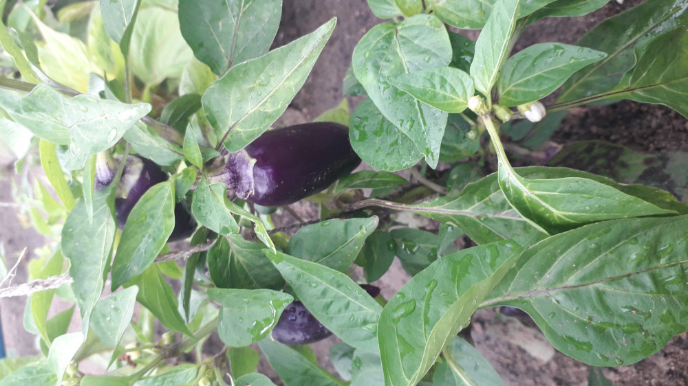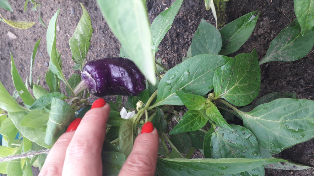 на кустах много, сразу завязываются синие перцы