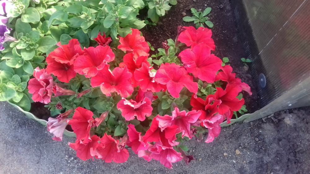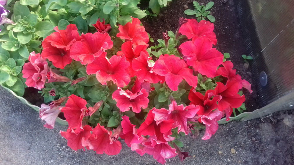 Петуния красивая! Кустики компактные, невысокие и все в цветах.