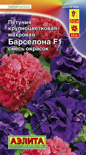 Аэлита Семена. Петуния «Барселона F1» крупноцветковая махровая (смесь окрасок)В данный момент этот товар отсутствует в продаже. Возможно, у нас найдется аналогичный или похожий товар здесь. 100% махровая специальная смесь кустовых петуний американской селекции. Подобраны два выразительных гибрида, которые активно работают в паре на основе гармоничного контраста. У Valentine F1 цветок мягкого красного оттенка с зубчатыми лепестками. Double Cascade F1 Blue ценится за бархатный «космический» оттенок. Кусты прямостоячие, крепкие, хорошо разветвленные, высотой 25-35 см и шириной 25-30 см. Цветки безупречной формы в виде гвоздики, Ø 8-9 см. Смесь рекомендуется для контейнерного выращивания и оформления солнечных цветников открытого грунта. |