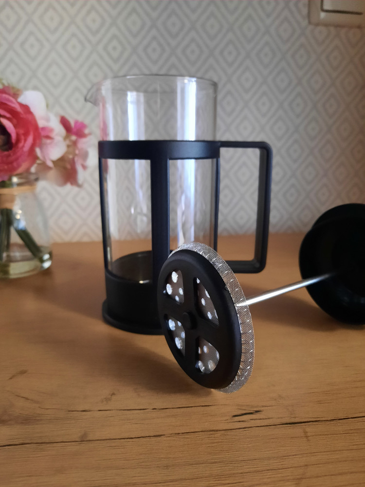 Заказала данный френч пресс. Оказалось, что сам пресс частично сделан из пластмассы. Мой предыдущий был полностью металлический. Желания окунать этот новый в кипяток нету. Заказала др в итоге. Сама кружка нормальная.