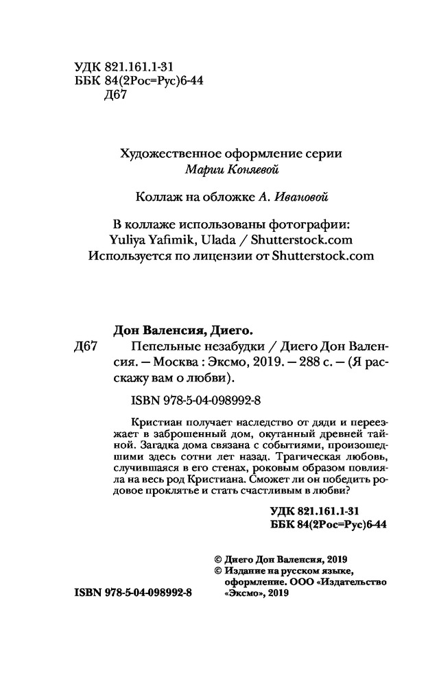 Пепельные незабудкиВ данный момент этот товар отсутствует в продаже. Возможно, у нас найдется аналогичный или похожий товар здесь. Серия: Я расскажу вам о любви (обложка) Кристиан получает наследство от дяди и переезжает в заброшенные дом, окутанный древней тайной. Загадка дома связана с событиями, произошедшими здесь сотни лет назад. Трагическая любовь, случившаяся в его стенах, роковым образом повлияла на весь род Кристиана. Сможет ли он победить родовое проклятье и стать счастливым в любви? |