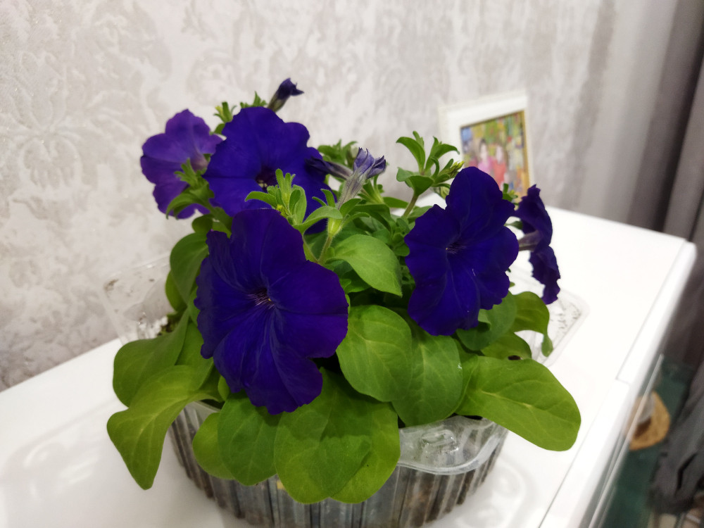 Взошли все семь! Цвет цветка, камера немного искажает, синий уходит в фиолетовый оттенок, на вид как бархатные.