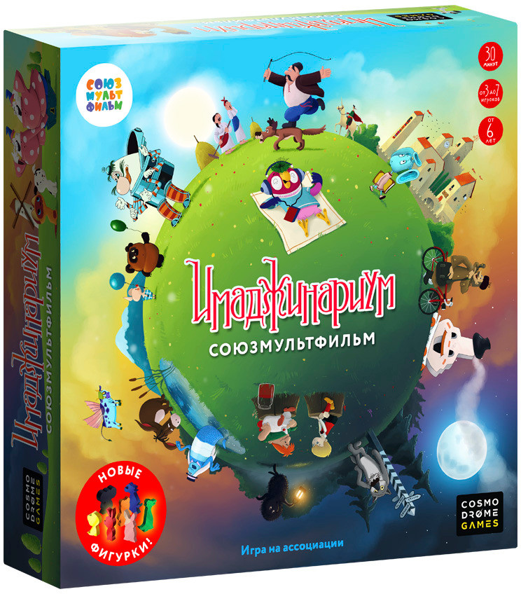 Обновленная версия «Имаджинариум. Союзмультфильм». Внутри коробки вас ждут карты с иллюстрациями из известных советских и российских мультфильмов. Помните дикое, но симпатичное привидение? Котенка, которого ждут неприятности? Рыжего кота, которого «и здесь неплохо кормят»? Эта версия знаменитой игры придется по душе всем, кто ностальгирует по старым добрым мультфильмам. Ведь без героев Союзмультфильма не обходился ни один день стольких поколений детей, которые, впрочем, остаются ими, даже вырастая.