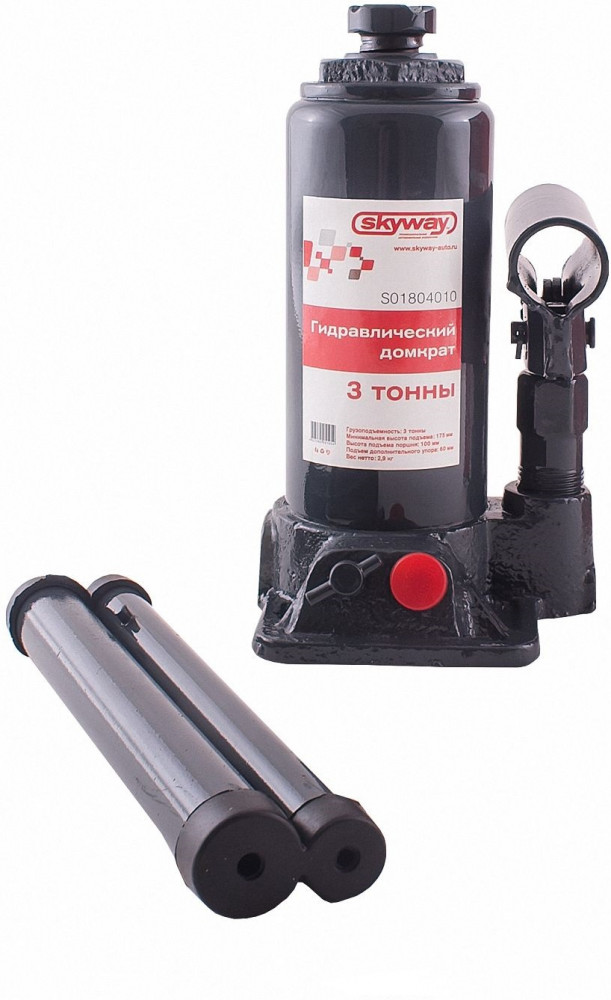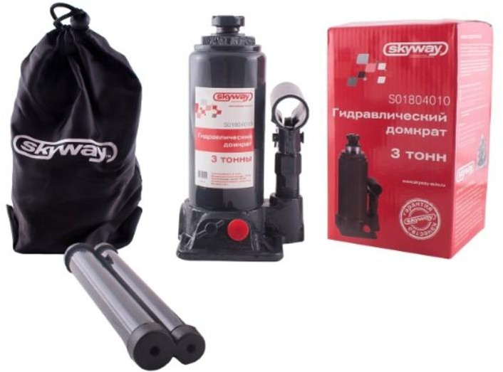Необходимость заменить колесо может возникнуть в любую минуту, справиться с такой задачей и при этом затратить минимум собственных сил, поможет компактный и надежный гидравлический бутылочный домкрат «Skyway». При небольших габаритах, он может поднять не только легковой автомобиль, но также и небольшой грузовой транспорт.