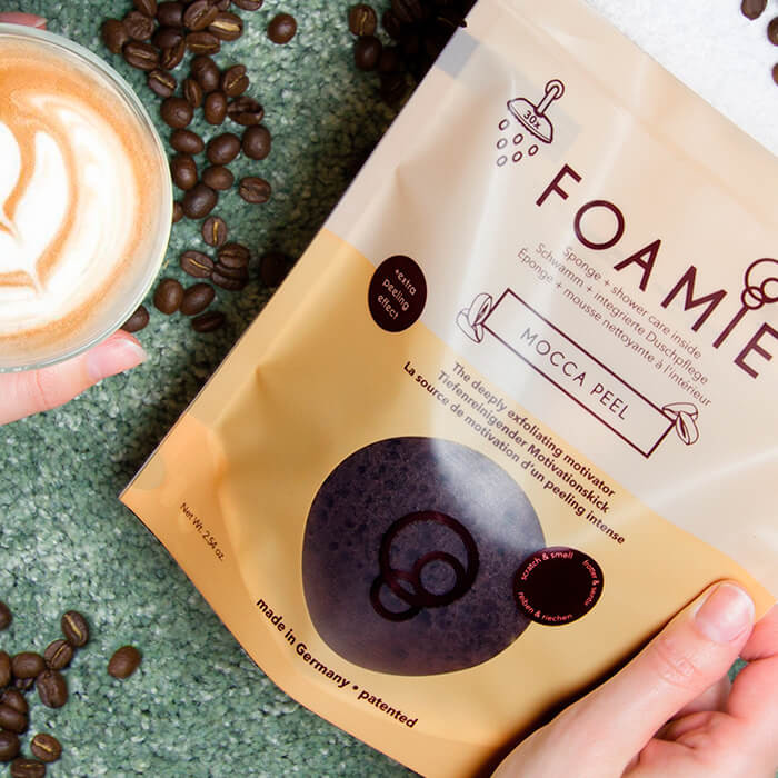 Foamie Mocca Peel — это пенящаяся губка для мытья с пробуждающим кофейным ароматом. Она эффективно очищает кожу, заряжает её энергией, витаминами и жизненной силой.