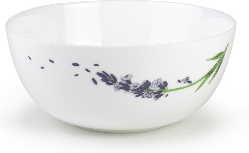Большой стеклянный салатник Lavender без полей, глубокий и компактный. Подходит для подачи салатов на общий стол. Закаленное стекло устойчиво к сколам и царапинам, легко моется. Рисунок нанесен таким образом, что не смывается в посудомоечной машине.