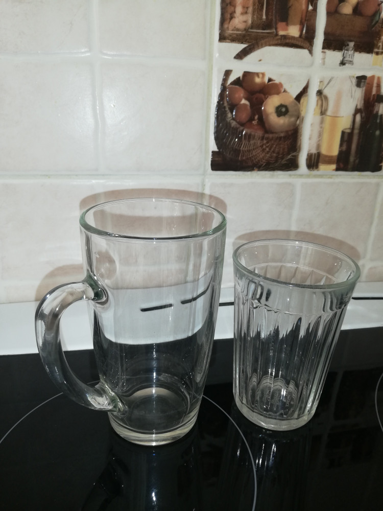 толстое стекло, красивая форма. не выглядит гигантской при вместимости 400 мл