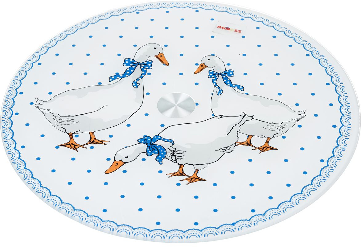 Красивая тортница, покупала в наборе с нарезной доской в одной тематике, тортница вращается, ножка отсутствует. Сама тортница из плотного стекла, красивый рисунок в деревенском стиле, очень милые гуси🤗 Бортики у тортницы отсутствуют.
