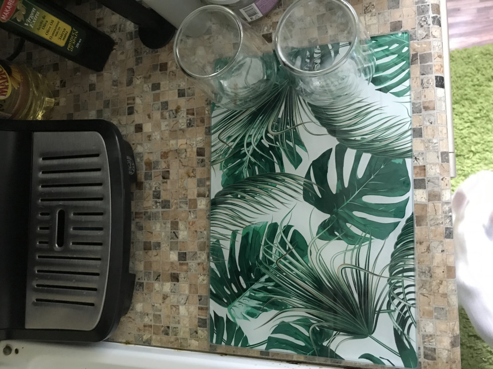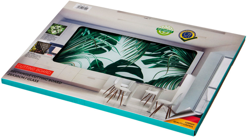 Яркая, красивая, в интерьер моей кухни вписалась идеально. Стеклянная, сзади наклеена пленка. Есть царапинка на этой пленке, но ее почти не видно из-за аляпистости рисунка.