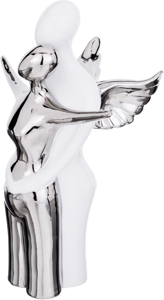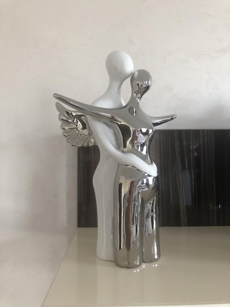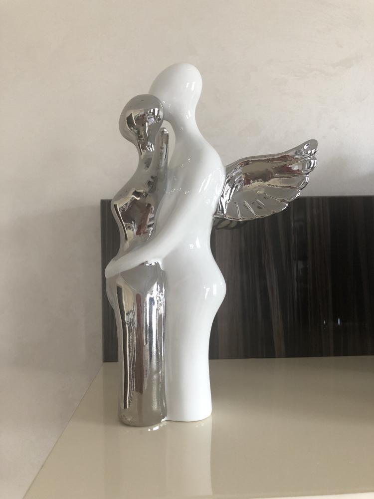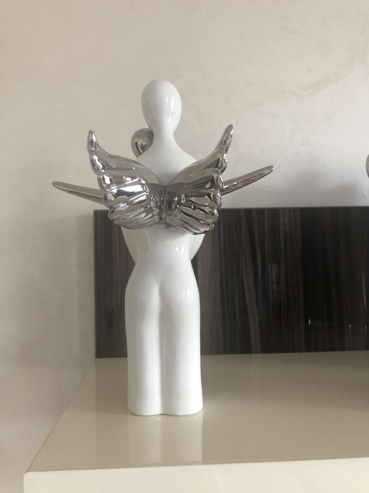 Статуэтка превзошла все мои ожидания! Во-первых, это размер! Она большая, объёмная! Чуть выше рамки для фотографий размером 10/15. Во-вторых, не лёгкая, хоть и полая, но вес имеет. В - третьих, дизайн и стиль интересный! При покупке долго сомневалась, а теперь хочется изучить коллекцию! Видела подсвечники этой серии! Очень нежно, стильно и красиво! Нет разочарования, один восторг! Немного неровное покрытие металлической краской, но в целом не бросается в глаза, только при детальном рассмотрении.
