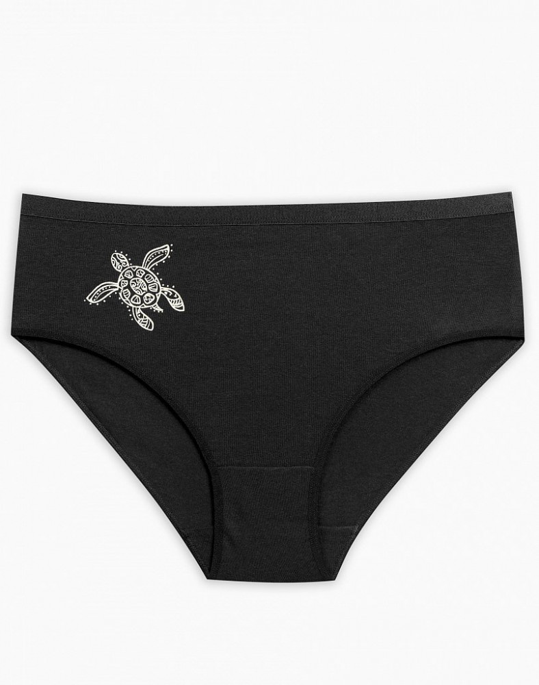 Трусики неплохие. Резинка слабовата, принт черепашки простая печать серого цвета и не декорирован стразами.