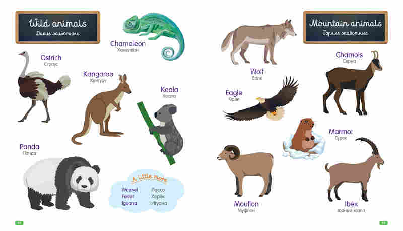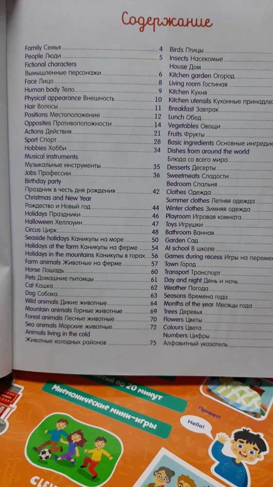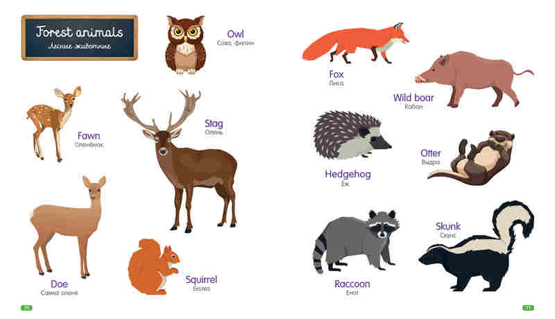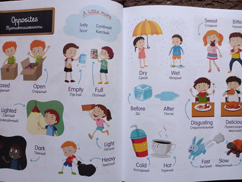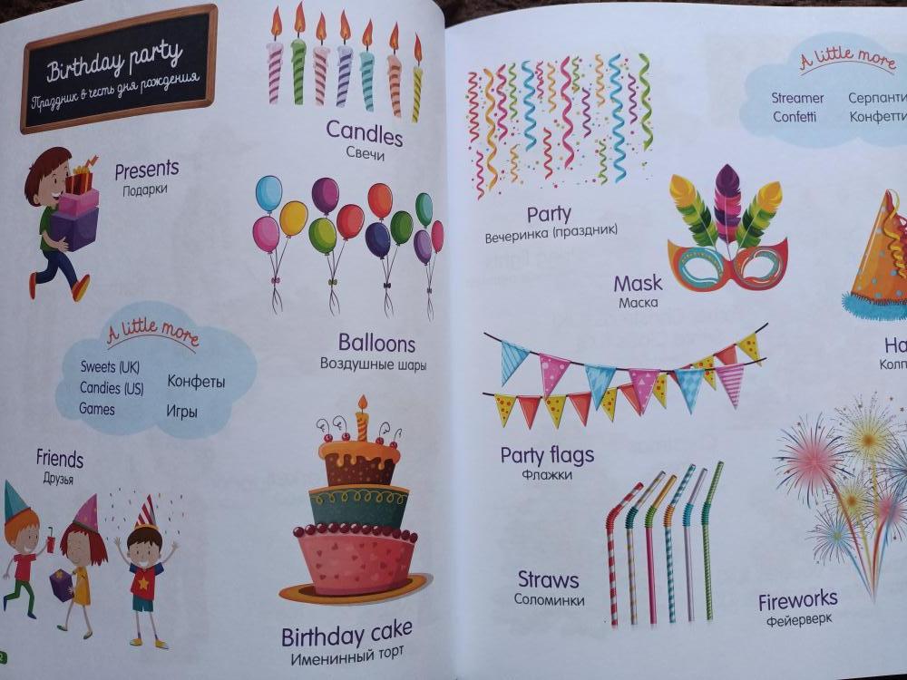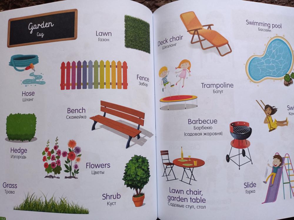 Классная книга, с картинками и на русском и на английском перевод написан. Легко учится слова.