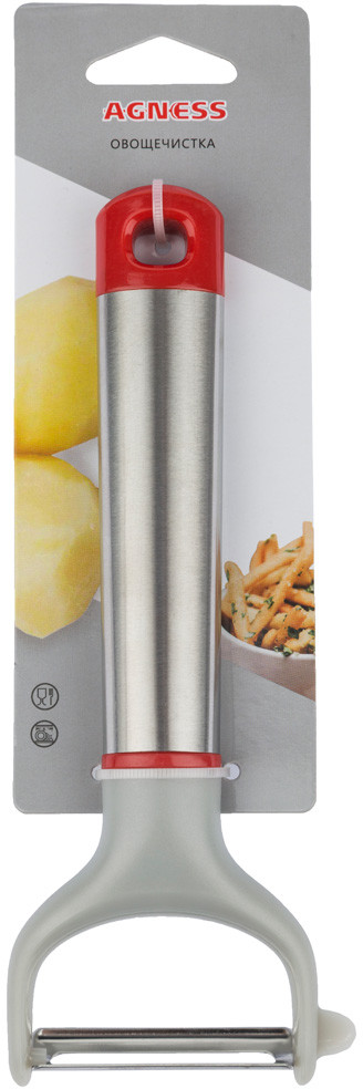 Agness ОвощечисткаВ данный момент этот товар отсутствует в продаже. Возможно, у нас найдется аналогичный или похожий товар здесь. Нож-пиллер (овощечистка) снабжен плавающим лезвием высококачественной нержавеющей стали и разработан специально для очистки от кожуры картофеля, овощей и фруктов любой формы и твердости. Сбоку на ноже находится специальный зубец, который позволяет удалять т.н. «глазки» с картофеля. Удобная эргономичная ручка овощечистки обеспечивает удобный захват и ваши руки не устанут от долгой работы. Легко и просто моется. |