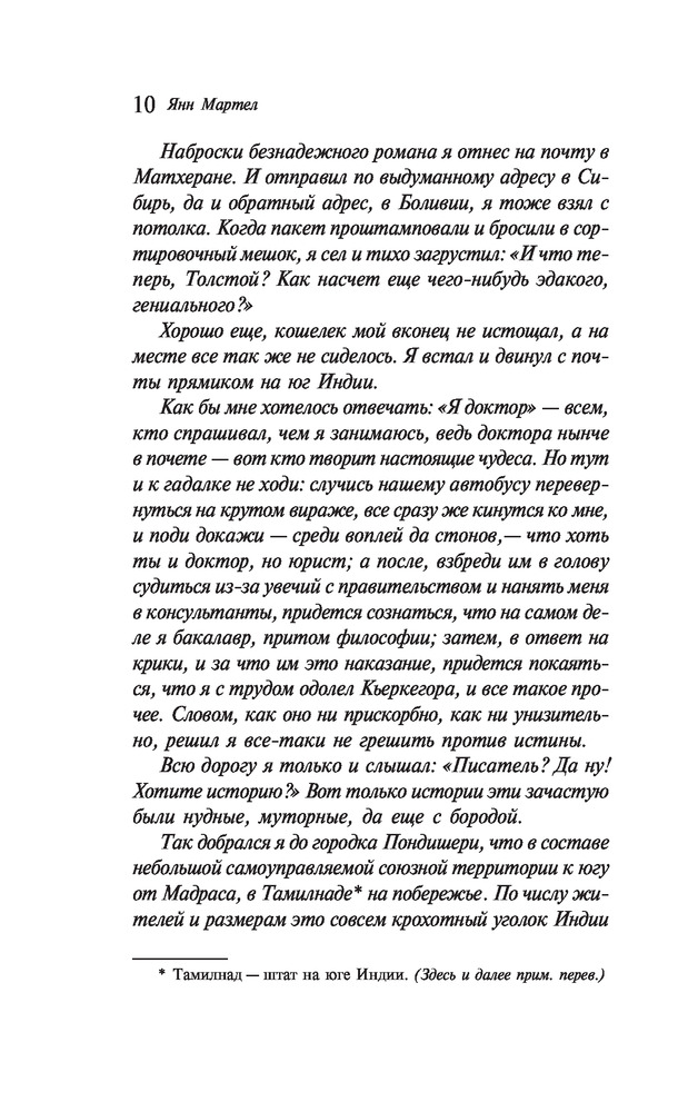 Жизнь ПиВ данный момент этот товар отсутствует в продаже. Возможно, у нас найдется аналогичный или похожий товар здесь. Серия: YA. Коллекционируй лучшее «Жизнь Пи» почти мгновенно стала легендой. Книга получила престижные премии и собрала вокруг себя целый культ поклонников. Фантастическое путешествие юноши и бенгальского тигра, описанное в романе, перекликается с повестью «Старик и море», с магическим реализмом Маркеса и с абсурдизмом Беккета. Книга стала не только бестселлером, но и символом литературы нашего века, флагманом культуры нового поколения. |