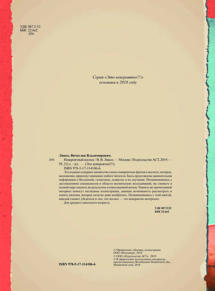 Невероятный космосВ данный момент этот товар отсутствует в продаже. Возможно, у нас найдется аналогичный или похожий товар здесь. Серия: Это невероятно!!! Это издание содержит множество самых невероятных фактов о космосе, которые, несомненно, привлекут внимание любого читателя. Здесь представлена занимательная информация о Вселенной, галактиках, планетах и их изучении. Познакомившись с достижениями специалистов в области космических исследований, вы сможете в полной мере оценить их результаты в повседневной жизни. Усвоить же прочитанный материал помогут наглядные иллюстрации, дающие возможность рассмотреть и понять явления, которые нелегко даже вообразить. Познакомившись с этой книгой, каждый сможет убедиться в том, что космос — это невероятно интересно.  |
