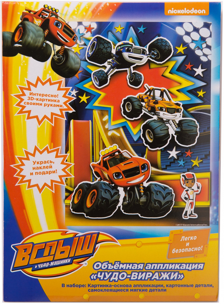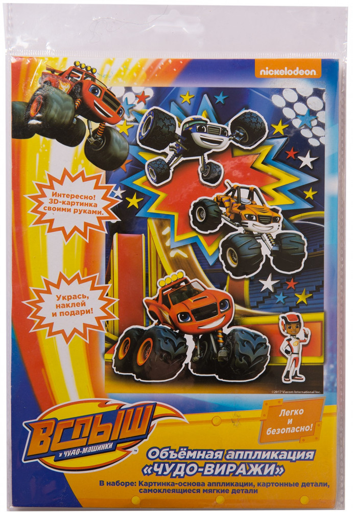 Blaze and the Monster Machines 3D-аппликация «Чудо-виражи»В данный момент этот товар отсутствует в продаже. Возможно, у нас найдется аналогичный или похожий товар здесь. Предложите ребенку создать эффектную 3D-аппликацию с героями любимого мультфильма. Легко — без клея и ножниц! Приклейте мягкие детали на фигурки, а их прикрепите по контуру к фоновой картинке с помощью клеевых подушечек. Потрясающая картинка готова! Обязательно похвалите юного умельца и поставьте поделку на самое видное место. Такая работа развивает у ребенка мелкую моторику, цветовое и тактильное восприятие, внимание, усидчивость, пространственное мышление и многое другое. А конструктивная похвала повышает у маленького мастера уверенность в себе. |