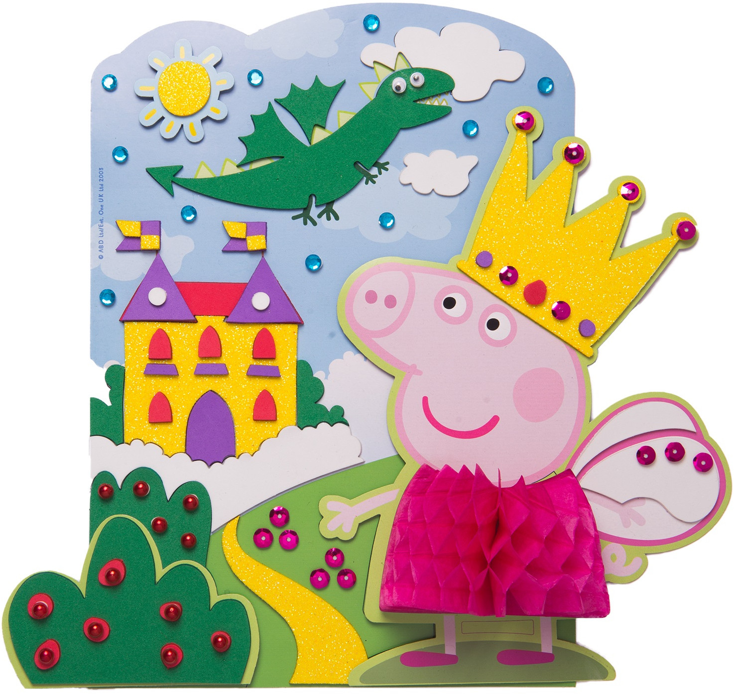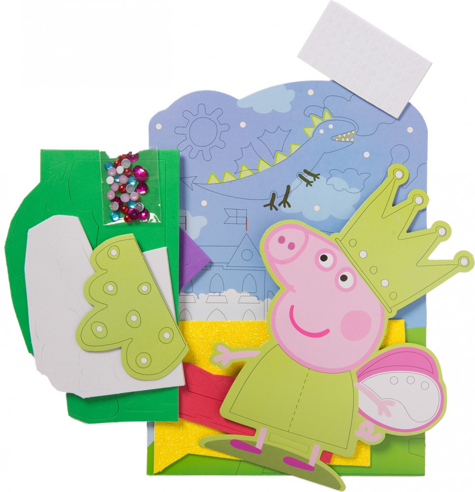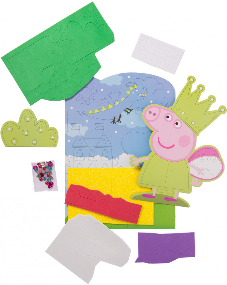 Peppa Pig Аппликация трехмерная «Воздушный замок Пеппы»В данный момент этот товар отсутствует в продаже. Возможно, у нас найдется аналогичный или похожий товар здесь. Создайте вместе с малышом трехмерную аппликацию! Раскройте объемное платьице Пеппы на 180 и приклейте его двусторонним скотчем к фигурке, а саму фигурку прикрепите к картинке стикерами-кружочками. Сняв защитную пленку, украсьте аппликацию мягкими деталями из ЭВА, наклеив их слоями по образцу. С помощью кружков-стикеров приклейте к поделке бусинки, стразы и пайетки. Во время работы предлагайте ребенку самому выбрать нужные детали, просите его называть их цвет, размер, форму, проговаривая, куда он кладет элемент: верхний левый угол, правый нижний и т.д. Это развивает творческое, логическое и пространственное мышление, мелкую моторику, восприятие формы, цвета и фактуры, осознание части и целого, усидчивость и многое другое. |