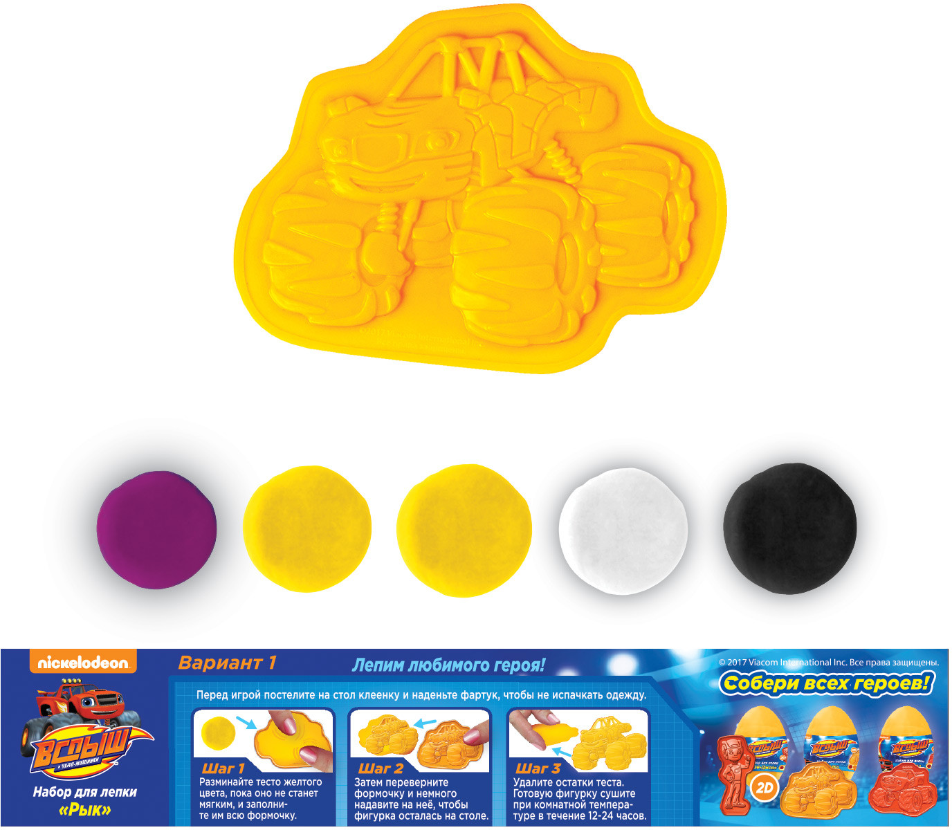 Blaze and the Monster Machines Набор для лепки «Рык»В данный момент этот товар отсутствует в продаже. Возможно, у нас найдется аналогичный или похожий товар здесь. Добро пожаловать в мир увлекательной лепки! Создайте из разных цветов детализированные 2D-фигурки Рыка и множество других замечательных поделок. Смешивайте цвета, получая новые оттенки, экспериментируйте! Цветная инструкция в картинках вам в этом поможет. А затем оставьте фигурки на воздухе, и через несколько часов, застыв, они превратятся в настоящие игрушки! |