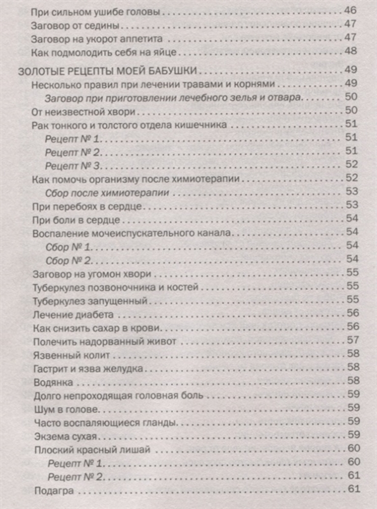 14000 заговоров сибирской целительницы. Самое полное собраниеВ данный момент этот товар отсутствует в продаже. Возможно, у нас найдется аналогичный или похожий товар здесь. Серия: Книги Н. И. Степановой Этот большой сборник заговоров сибирской целительницы Натальи Степановой подготовлен на основе вопросов и писем ее читателей. «14000 заговоров сибирской целительницы» — это одна из самых полных публикаций Натальи Степановой последних лет. В этой книге вы найдете уникальные, проверенные веками заговоры, обряды, обереги, с помощью которых можно защитить себя, своих родных и близких от зависти, порчи, злого слова, обрести силу, обезопасить себя от происков врагов, наладить отношения в семье. Вы узнаете о том, как отчитать сердечные хвори, справиться с самыми тяжелыми заболеваниями, как уберечь своего ребенка от бед и несчастий, позаботиться о его здоровье и помочь стать счастливым. |