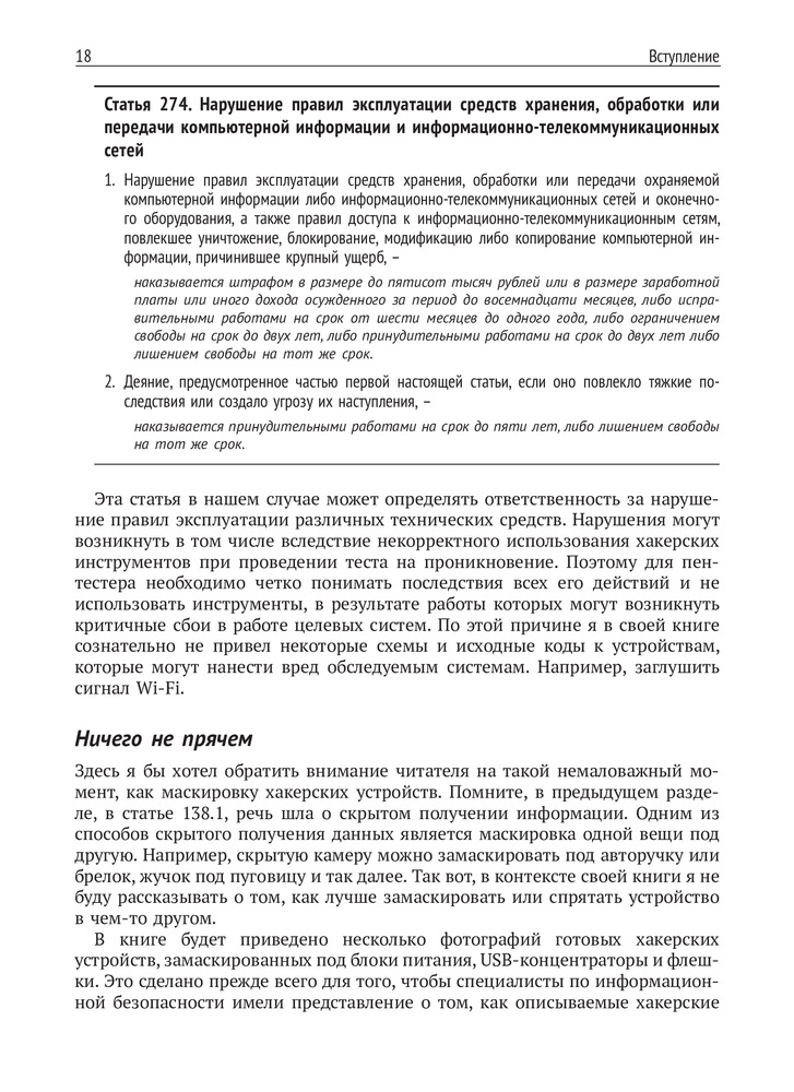 💳 Оплатить за товар можно при получении 🇰🇿 Есть бесплатная доставка по Казахстану от 1 дня 🎁 Копите бонусы с каждой покупки Многообразие и доступность различных недорогих аппаратных платформ, таких как Arduino, Raspberry Pi и др., простота их программирования, и при этом практически полное отсутствие средств защиты от них делают хакерские устройства мощным и опасным средством реализации компьютерных атак. В книге рассматриваются как теоретические основы информационной безопасности, так и практические аспекты создания собственных устройств с исходными кодами, схемами и примерами реализации. Также рассматриваются механизмы защиты от данного вида атак. |