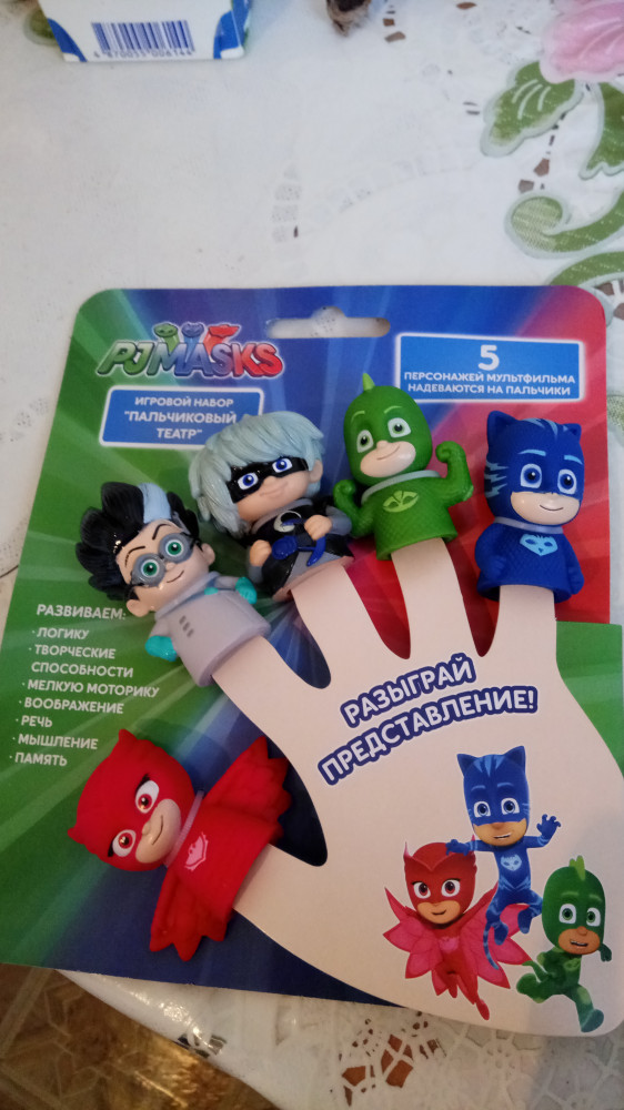 PJ Masks Театр пальчиковый «Герои в масках»В данный момент этот товар отсутствует в продаже. Возможно, у нас найдется аналогичный или похожий товар здесь. Устройте вместе с малышом настоящий пальчиковый театр! Наденьте на пальчики себе и ребенку забавные фигурки персонажей мультфильма «Герои в масках» и разыгрывайте увлекательные представления. Дома, на природе, в садике, в гостях, в машине и автобусе — с нашим набором «актеров» из пластизоля театр может быть везде. А во время игр с пальчиковыми фигурками у малыша активно развиваются речевые навыки, воображение, моторика рук, творческое мышление и многое другое. Пальчиковый театр — это веселая игра и разностороннее развитие. |