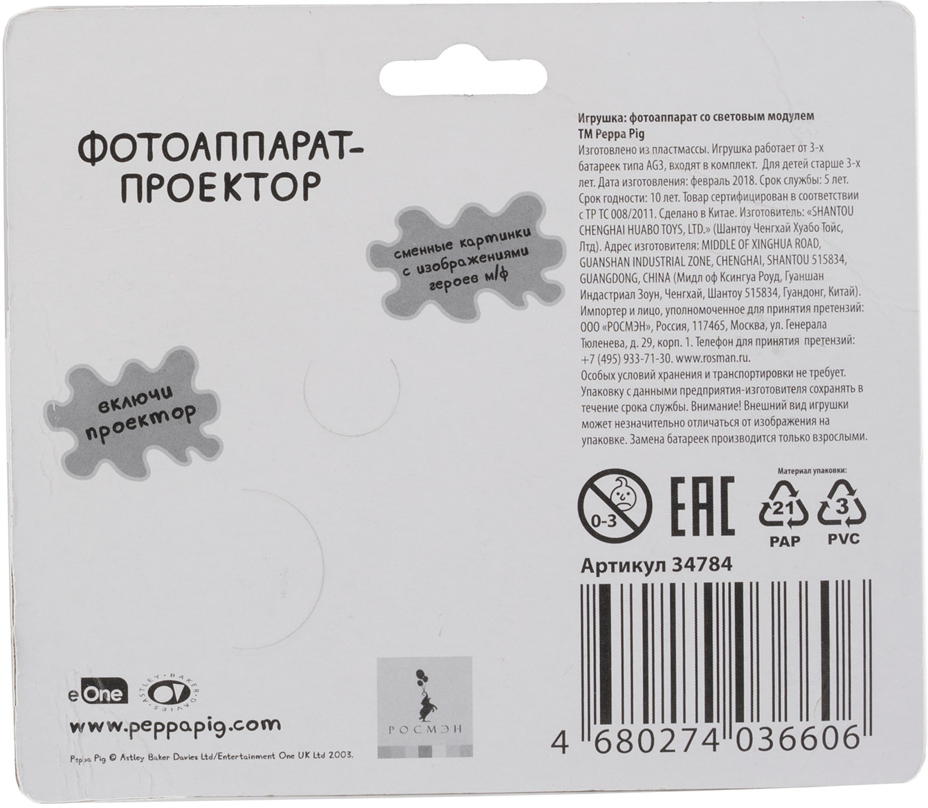 Peppa Pig Фотоаппарат-проекторВ данный момент этот товар отсутствует в продаже. Возможно, у нас найдется аналогичный или похожий товар здесь. Яркий, блестящий фотоаппарат «Свинка Пеппа» со встроенным проектором обязательно заинтересует Вашего ребёнка. Нажимайте на его верхнюю кнопку и просматривайте 8 сменных слайдов с героями любимого мультфильма! Картинки можно увидеть не только в световой проекции на стене темной комнаты, но и в окошке видоискателя (в нём изображения видны даже без батареек). Это занятие обязательно придется по душе крохе! |