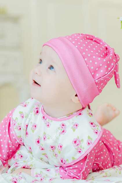 Очень красивый и качественный комплект. Пошив на 5ку, все швы ровные, нитки нигде не торчат. Ткань приятный к телу хлопок. Шапочки хорошо сидят н голове ребенка и не сползают. Резинка трикотажная мягкая, не оставляет следов на коже. В наборе три шапки
