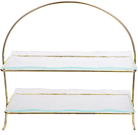 Loraine Блюдо 2-х ярусное на подставкеВ данный момент этот товар отсутствует в продаже. Возможно, у нас найдется аналогичный или похожий товар здесь. Элегантное блюдо, выполненное из стекла, сочетает в себе изысканный дизайн с максимальной функциональностью. Блюдо предназначено для красивой подачи на стол конфет, фруктов и десертов. Подставка выполнена из стали с золотым покрытием. Блюдо украсит сервировку вашего стола и подчеркнет прекрасный вкус хозяина, а также станет отличным подарком. |