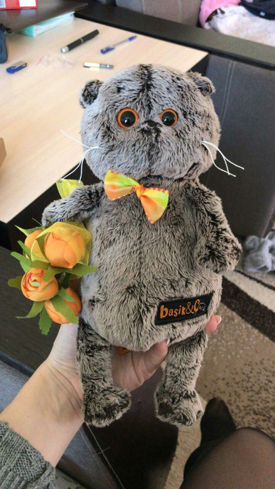 Budi Basa Игрушка мягкая «Басик с букетом оранжевых пионов»В данный момент этот товар отсутствует в продаже. Возможно, у нас найдется аналогичный или похожий товар здесь. Серия: Basik Кот Басик — галантный вислоухий шотландец с трогательными глазками и усиками-ниточками, торчащими во все стороны. По задумке дизайнера, глазки у Басика разного размера, чтобы взгляд был мультяшно удивленным. Дымчатый шотландец «живет» в коробке-переноске, изготовленной из плотного крафт-картона. Очень презентабельно и стильно! Как любому породистому коту, Басику положен паспорт. И он имеется на обратной стороне коробки. Составлен с юмором и вызывает улыбку. |