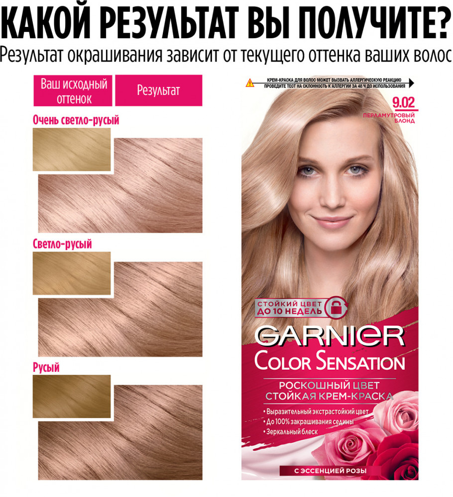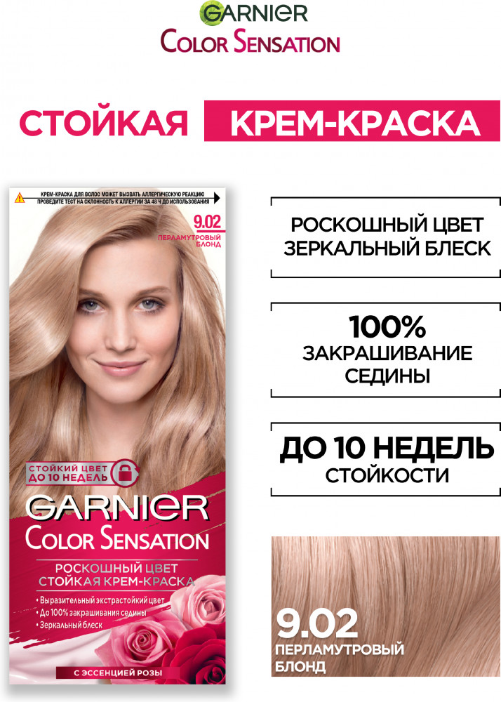 Garnier Крем-краска для волос стойкая «Color Sensation, Роскошь цвета», оттенок 9.02 Перламутровый блонд