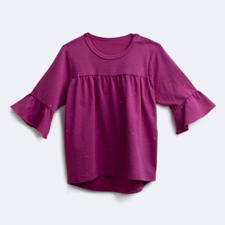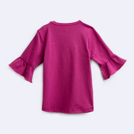 Очень понравилась, больше блузка, чем футболка! Внучка, прямо девочка-девочка в ней. С блестками, вечерне-светский вариант.