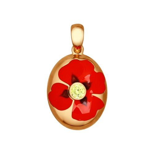 SOKOLOV Подвеска из золочёного серебра с эмалью и фианитом «Маки»