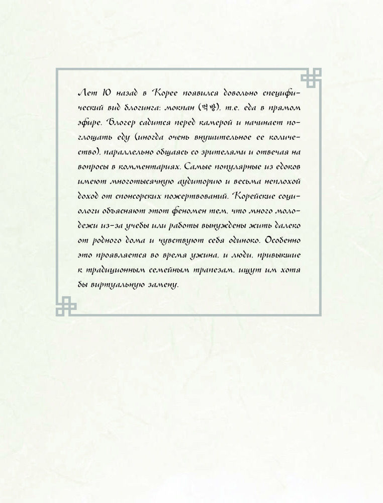 Корейская кухняЕкатерина Владимировна Астанкова В данный момент этот товар отсутствует в продаже. Возможно, у нас найдется аналогичный или похожий товар здесь. Серия: Мировая еда Наши знания о корейской еде часто сводятся к набору стереотипов. Корейская морковь, кимчи, острые специи и очень-очень много риса... Но, как и популярный миф о любви к собачатине, всё это далеко от истины: на самом деле местная кухня гораздо интереснее и разнообразнее, чем кажется. Эта книга откроет для вас настоящую Корею: привлекательную и колоритную. Знаток корейской кухни, фудблогер и ведущая кулинарных мастер-классов Екатерина Астанкова делится опытом создания вкусных и необычных блюд. А заодно рассказывает об особенностях истории и культуры, которые оказали влияние на гастрономические предпочтения корейцев. Удобные пошаговые рецепты, аппетитные иллюстрации и полезные советы помогут самостоятельно освоить корейскую кухню быстро и без лишних усилий. Вас ждёт всё разнообразие местной кулинарии: закуски и горячее, супы и выпечка, соусы и пряности, напитки и десерты. Целая вселенная неожиданных вкусов и экзотических сочетаний! |